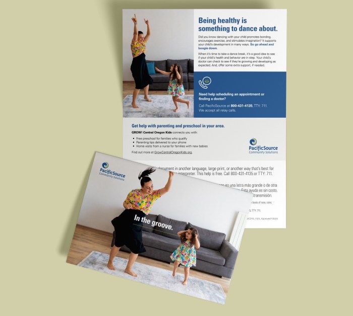 This mailer had two goals. The internal client needed to share regional resources for parents in the Central Oregon area, but also wanted to encourage Medicaid members to take their kids to the doctor. Because the section of 18-point text in several languages is required for Medicaid collateral, the design challenge was to create a hierarchy of messaging. This piece was the template for three other regional mailers for Oregon, and then each was translated into six languages.