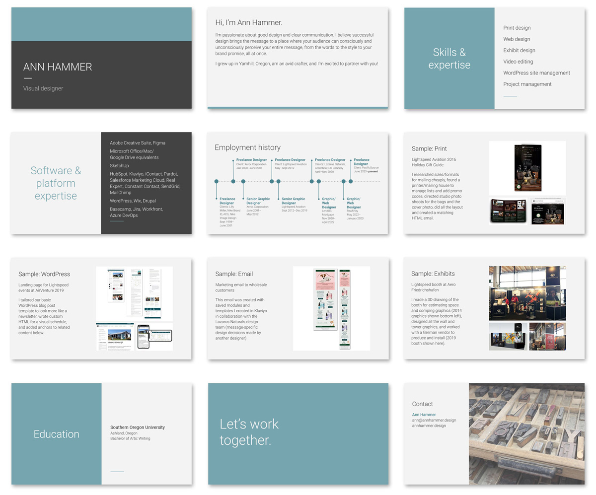 Professional profile presentation Type: Digital Design I created a custom template, formatted the text and photos, and added simple animations. View on Google Slides. Related