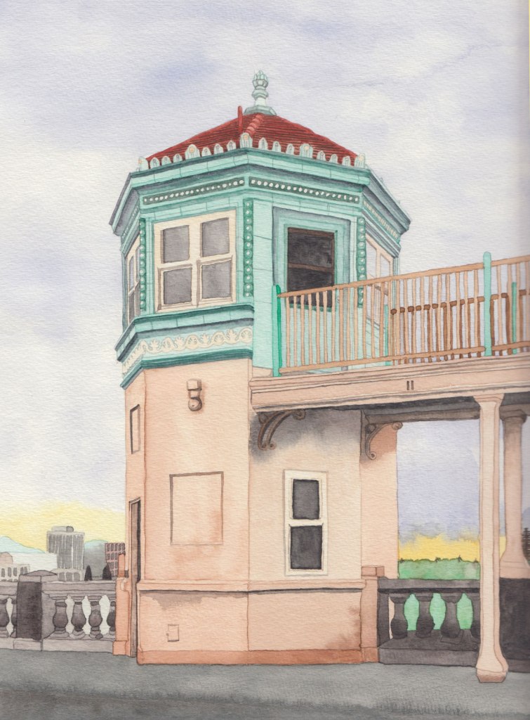 Watercolor illustration Type: Value Add Little tower on the Burnside Bridge in watercolor, March 2020 Related