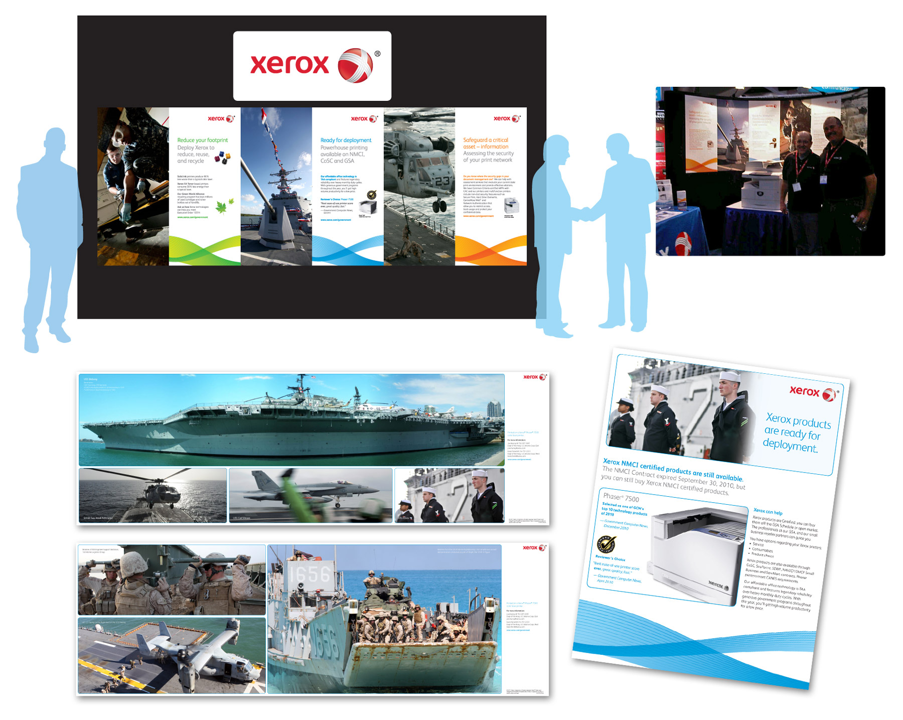 Xerox booth graphics Type: Value Add Booth graphics and collateral for government trade shows Booth graphics, print samples, and a flyer for Xerox at government trade shows — used for a year Related